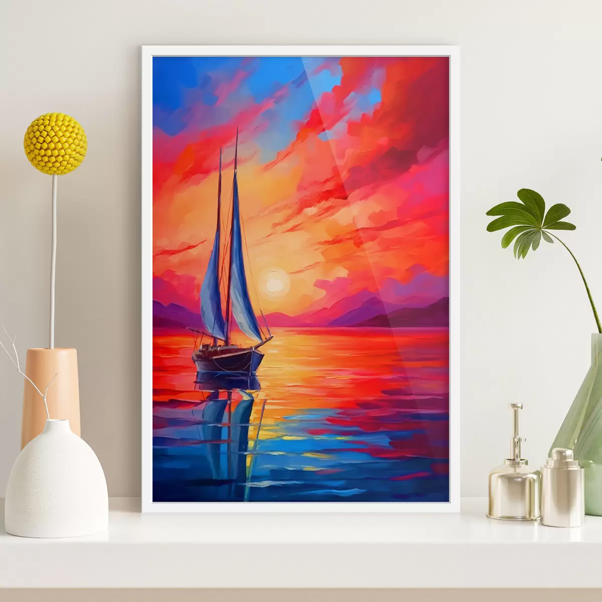 Plakatas Burlaivis ryškaus saulėlydžio fone f42151