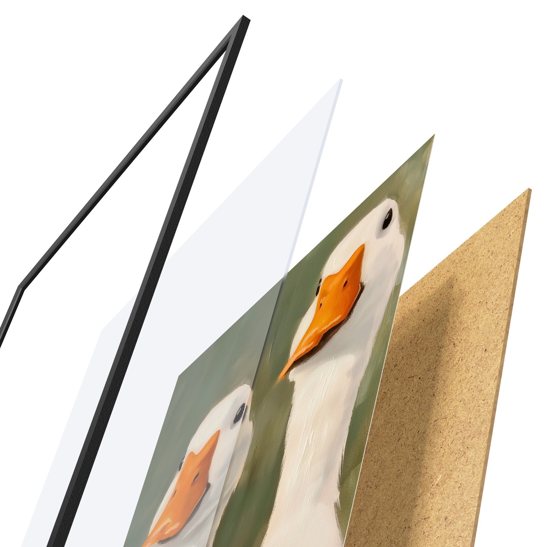 Plakatą sudaro rėmas, pleksiklas, atspausdintas vaizdas ir medžio drožlių plokštės pagrindas. Plakatą galima iš karto pakabinti ant sienos dėl kitoje pusėje esančių laikiklių.