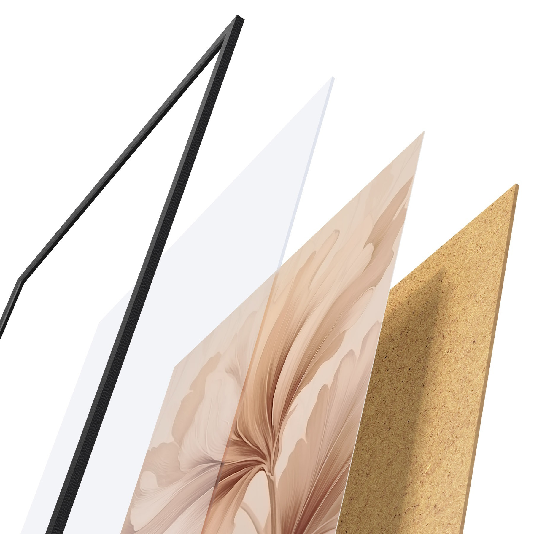 Plakatą sudaro rėmas, pleksiklas, atspausdintas vaizdas ir medžio drožlių plokštės pagrindas. Plakatą galima iš karto pakabinti ant sienos dėl kitoje pusėje esančių laikiklių.