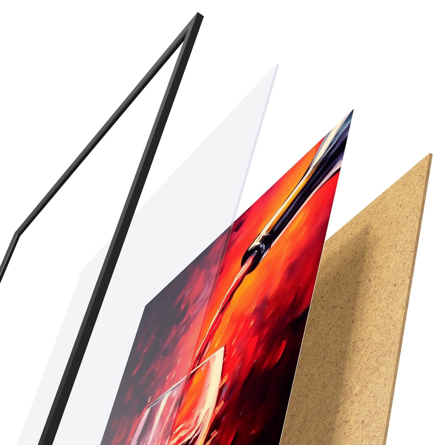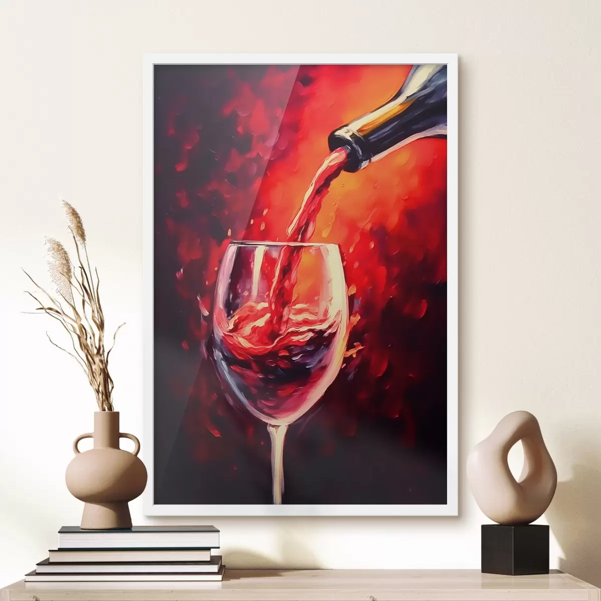 Plakatas Raudonas vynas stiklinėje ugnies švytėjimo fone f42162