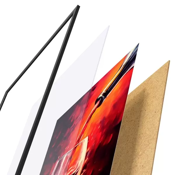 Plakatą sudaro rėmas, pleksiklas, atspausdintas vaizdas ir medžio drožlių plokštės pagrindas. Plakatą galima iš karto pakabinti ant sienos dėl kitoje pusėje esančių laikiklių.