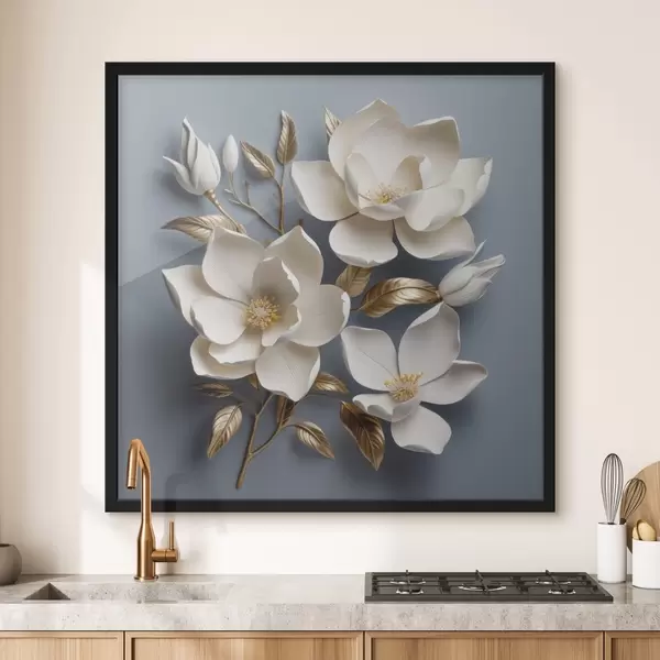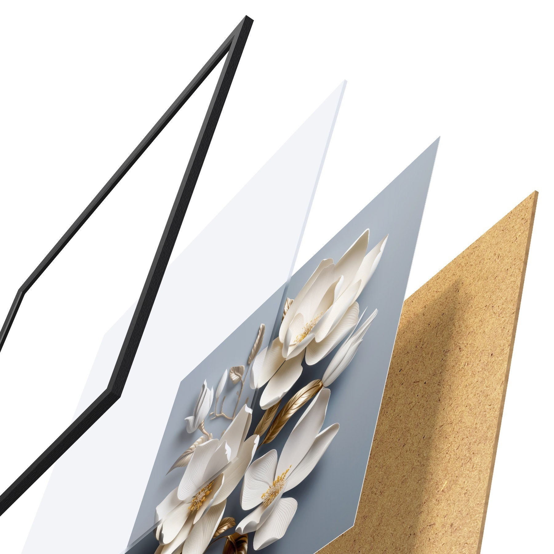 Plakatas Didelės gėlės šviesiai pilkame fone f42174