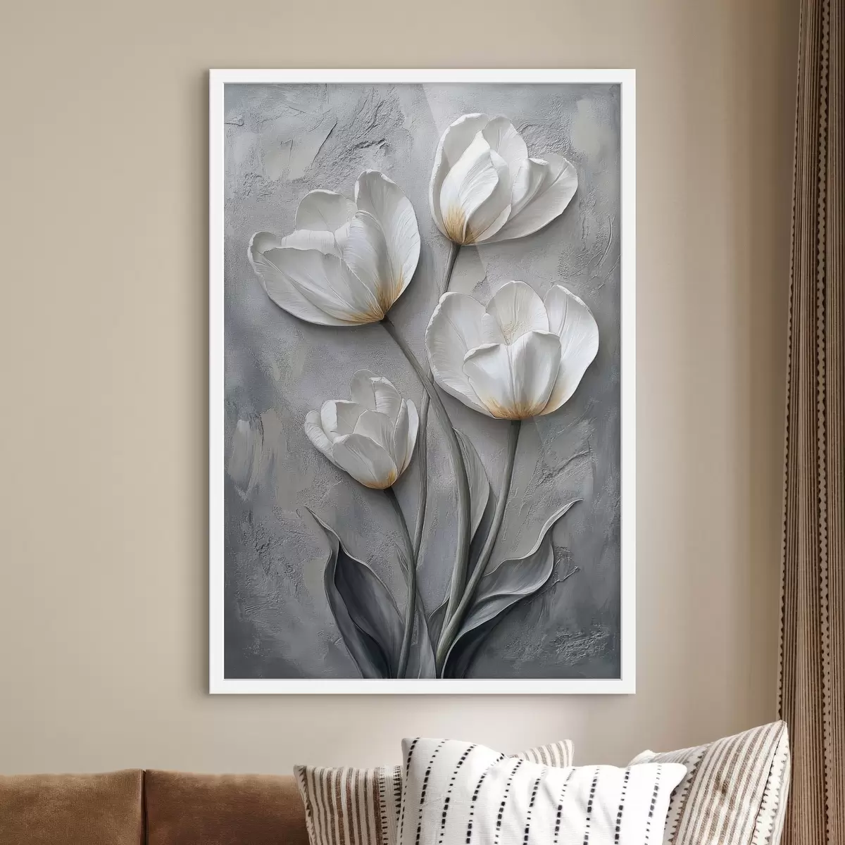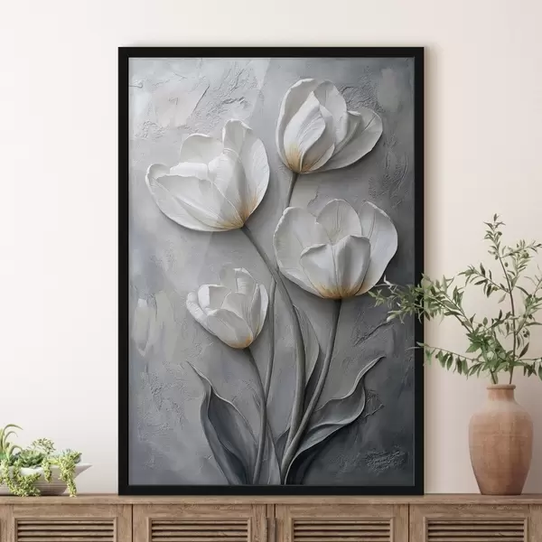 Plakatas Prabangios tulpės betoninės sienos fone f42179