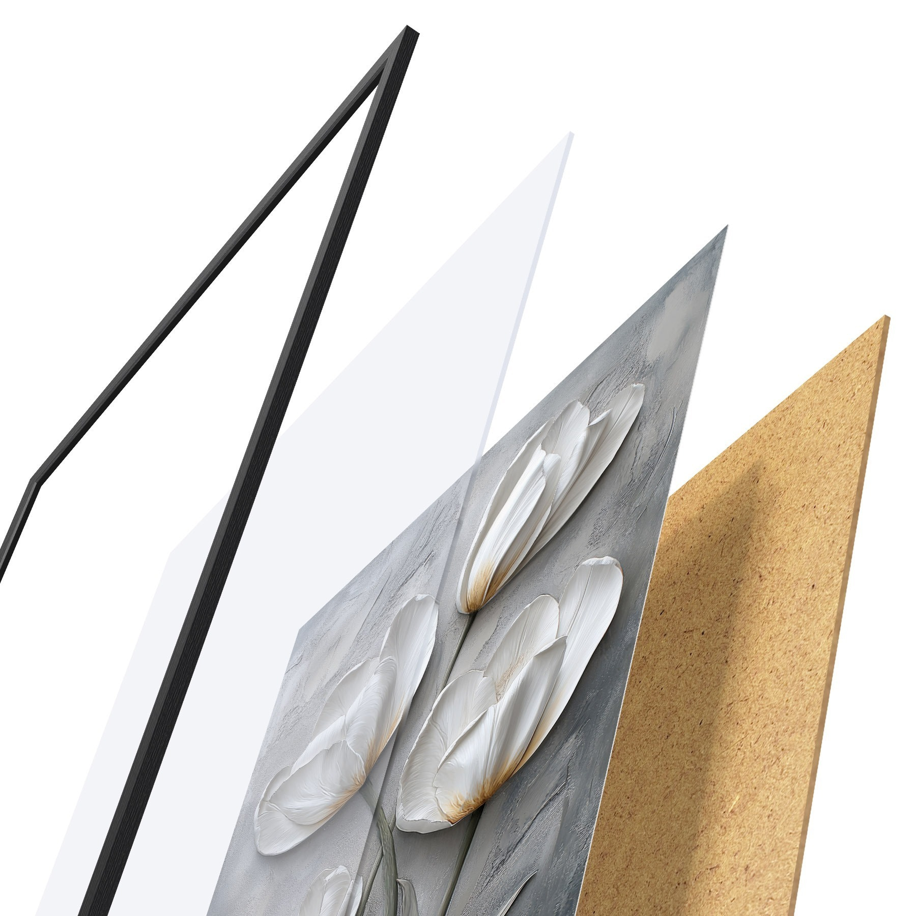 Plakatą sudaro rėmas, pleksiklas, atspausdintas vaizdas ir medžio drožlių plokštės pagrindas. Plakatą galima iš karto pakabinti ant sienos dėl kitoje pusėje esančių laikiklių.