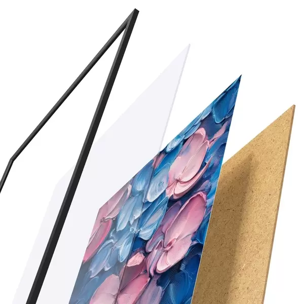 Plakatą sudaro rėmas, pleksiklas, atspausdintas vaizdas ir medžio drožlių plokštės pagrindas. Plakatą galima iš karto pakabinti ant sienos dėl kitoje pusėje esančių laikiklių.