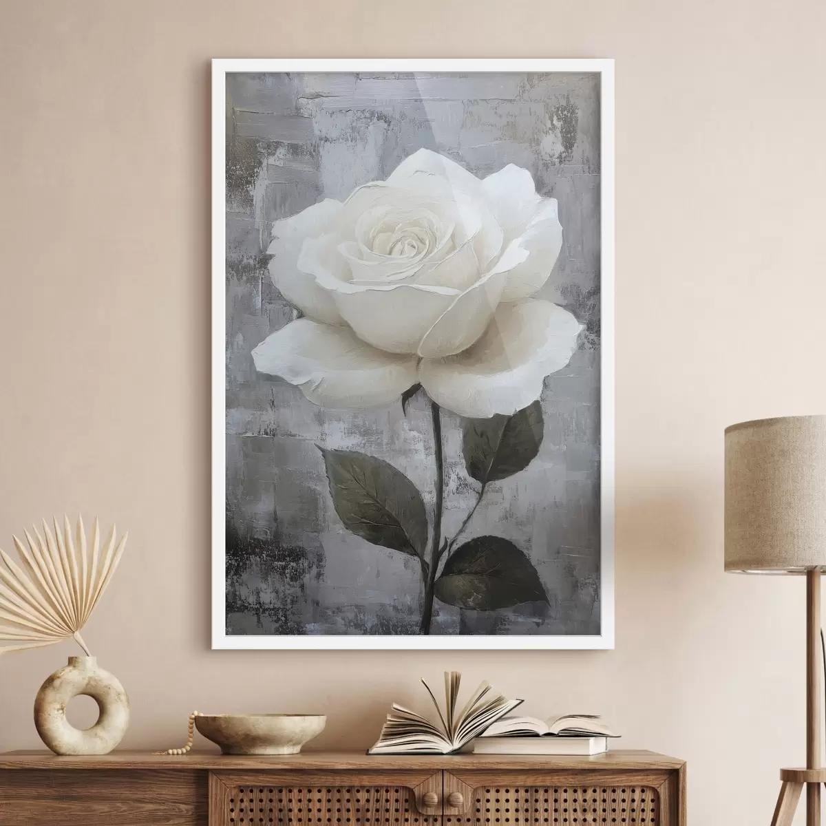 Plakatas Balta rožė, nupiešta ranka betoniniame fone f42185