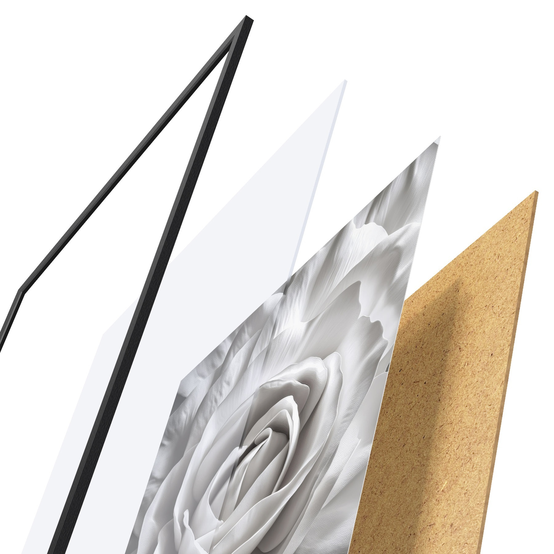 Plakatą sudaro rėmas, pleksiklas, atspausdintas vaizdas ir medžio drožlių plokštės pagrindas. Plakatą galima iš karto pakabinti ant sienos dėl kitoje pusėje esančių laikiklių.