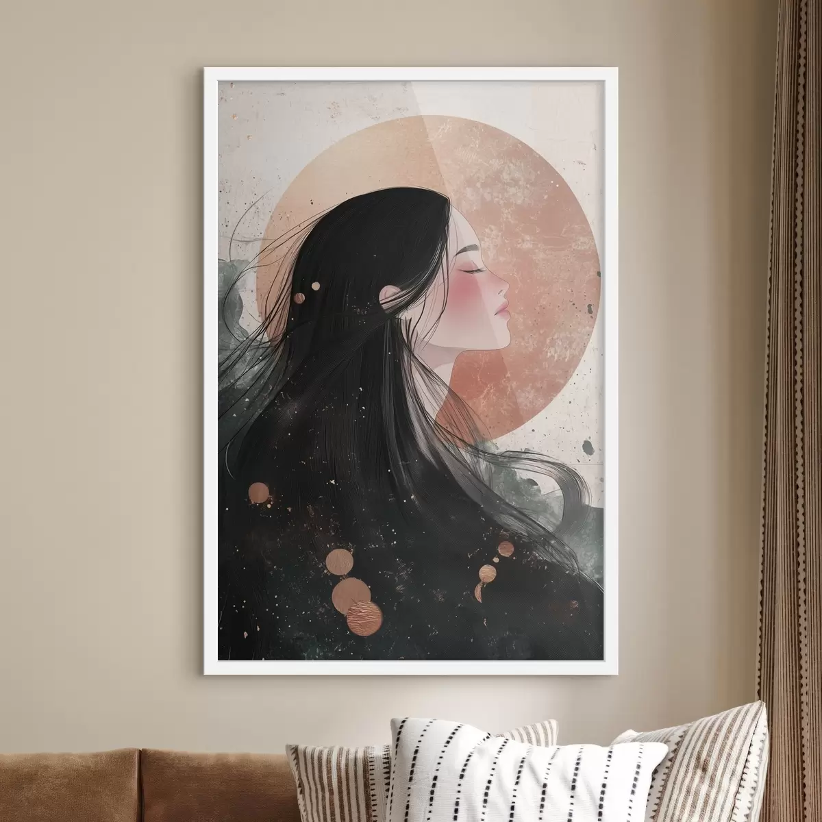 Plakatas Graži mergaitė, rytietiškas stilius, saulė, rožinės spalvos Ne f42195
