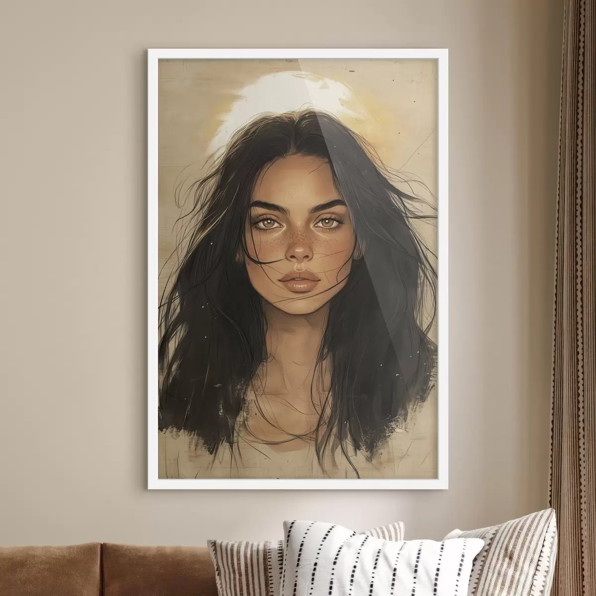 Plakatas Moters portretas, genčių stilius, smėlio spalvos f42197
