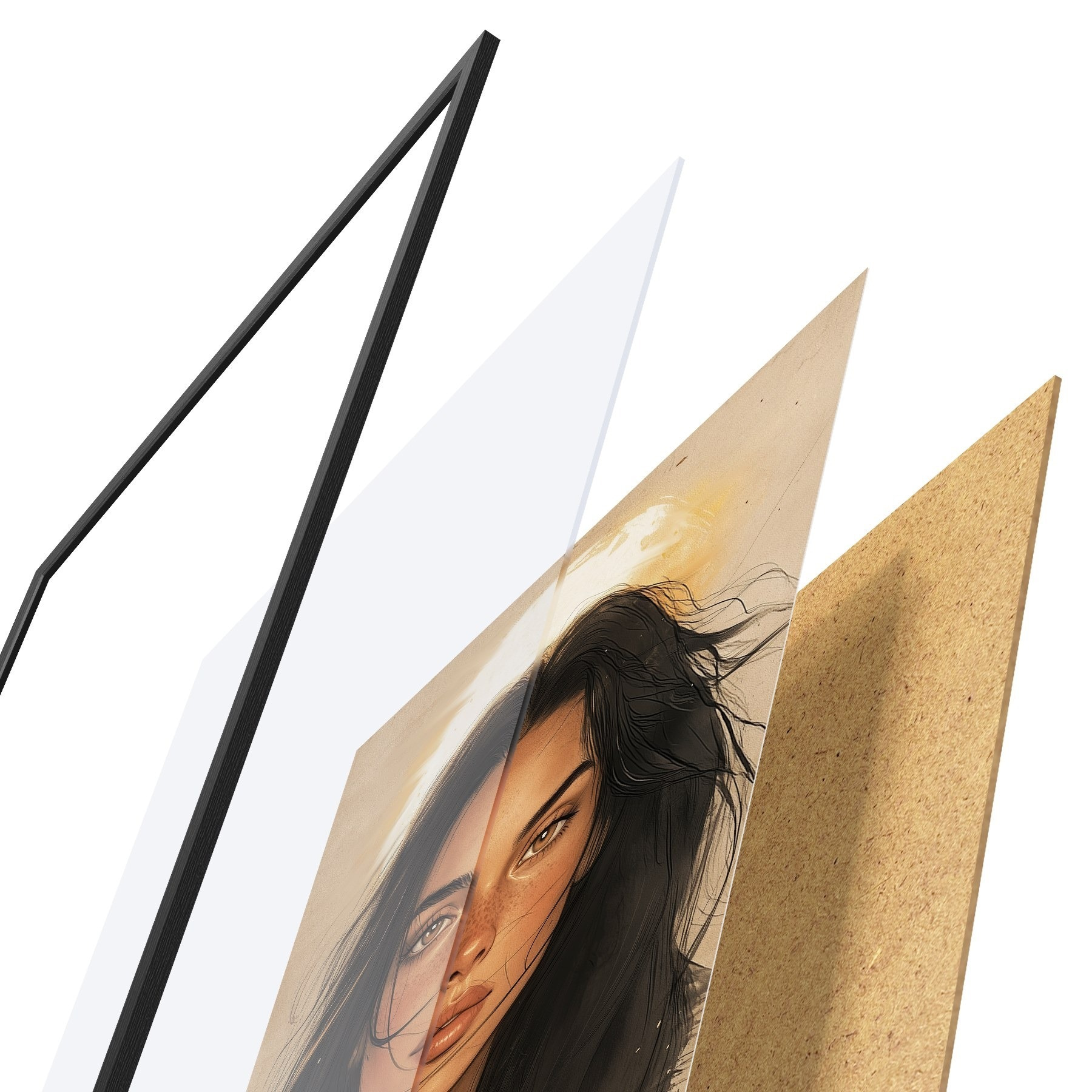 Plakatą sudaro rėmas, pleksiklas, atspausdintas vaizdas ir medžio drožlių plokštės pagrindas. Plakatą galima iš karto pakabinti ant sienos dėl kitoje pusėje esančių laikiklių.
