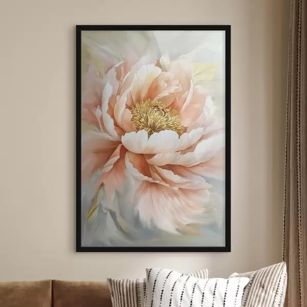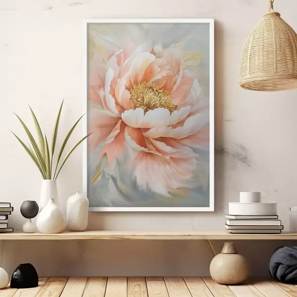 Plakatas Akrilo stiliaus bijūno gėlė, rožinės spalvos, teptuko potėpiai Ne f42199