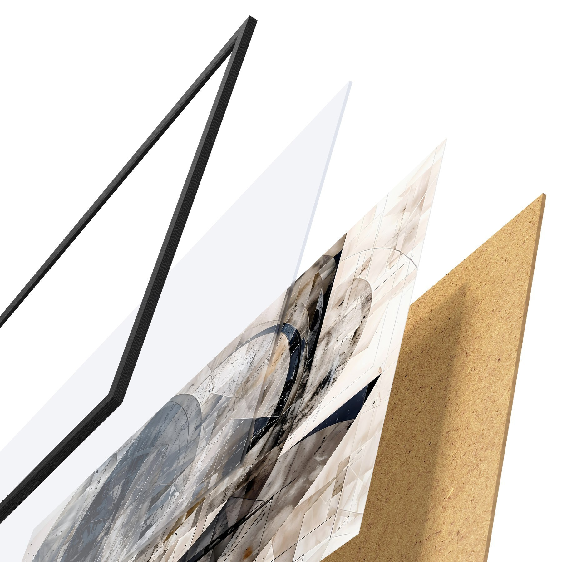 Plakatas Abstrakti šiuolaikinė geometrinė kompozicija su persidengiančiomis formomis ir pilkų, juodų ir smėlio atspalvių spauda f42212