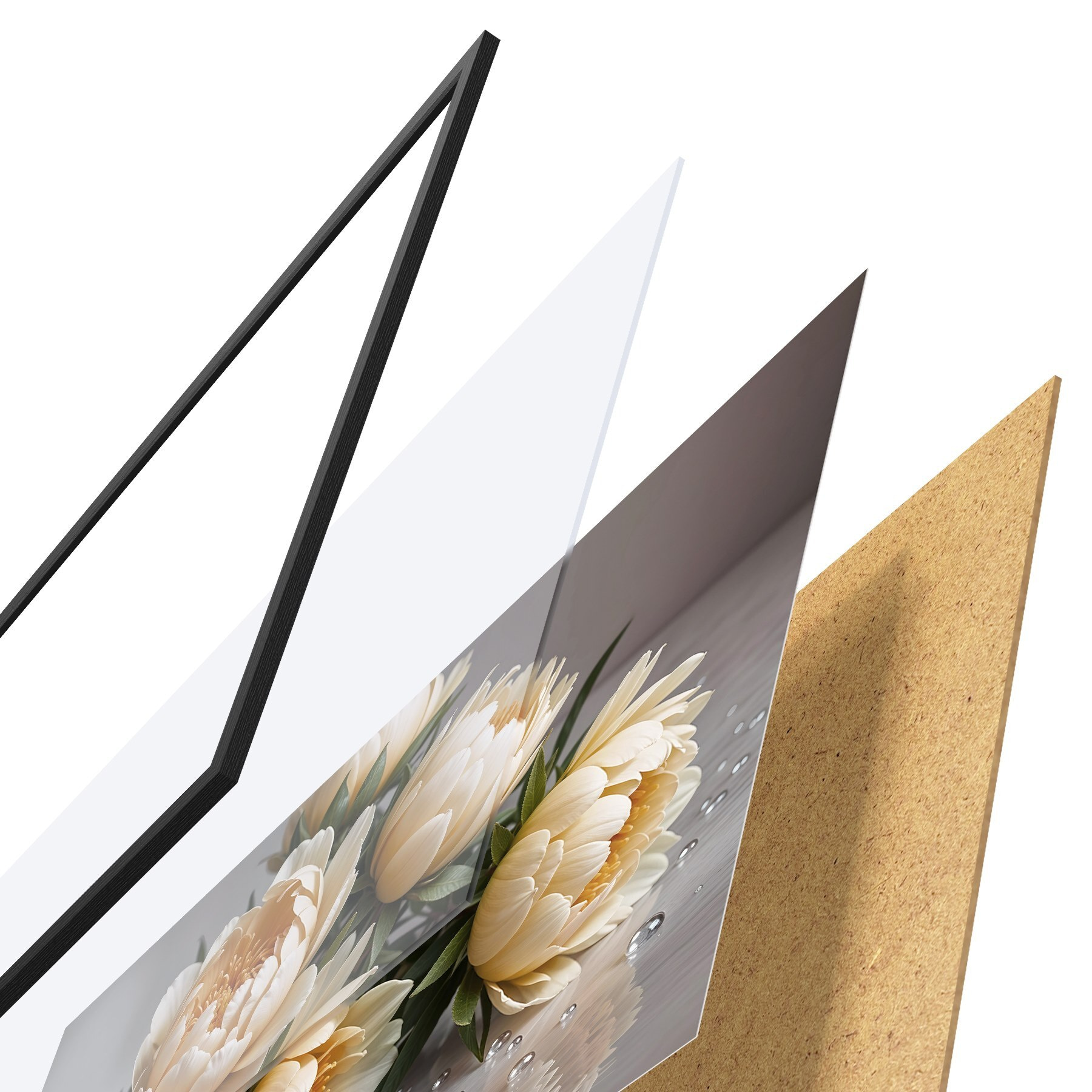 Plakatą sudaro rėmas, pleksiklas, atspausdintas vaizdas ir medžio drožlių plokštės pagrindas. Plakatą galima iš karto pakabinti ant sienos dėl kitoje pusėje esančių laikiklių.