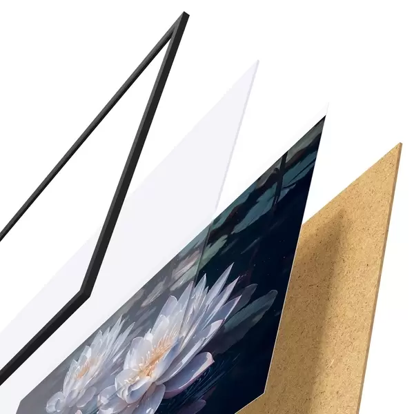 Plakatą sudaro rėmas, pleksiklas, atspausdintas vaizdas ir medžio drožlių plokštės pagrindas. Plakatą galima iš karto pakabinti ant sienos dėl kitoje pusėje esančių laikiklių.