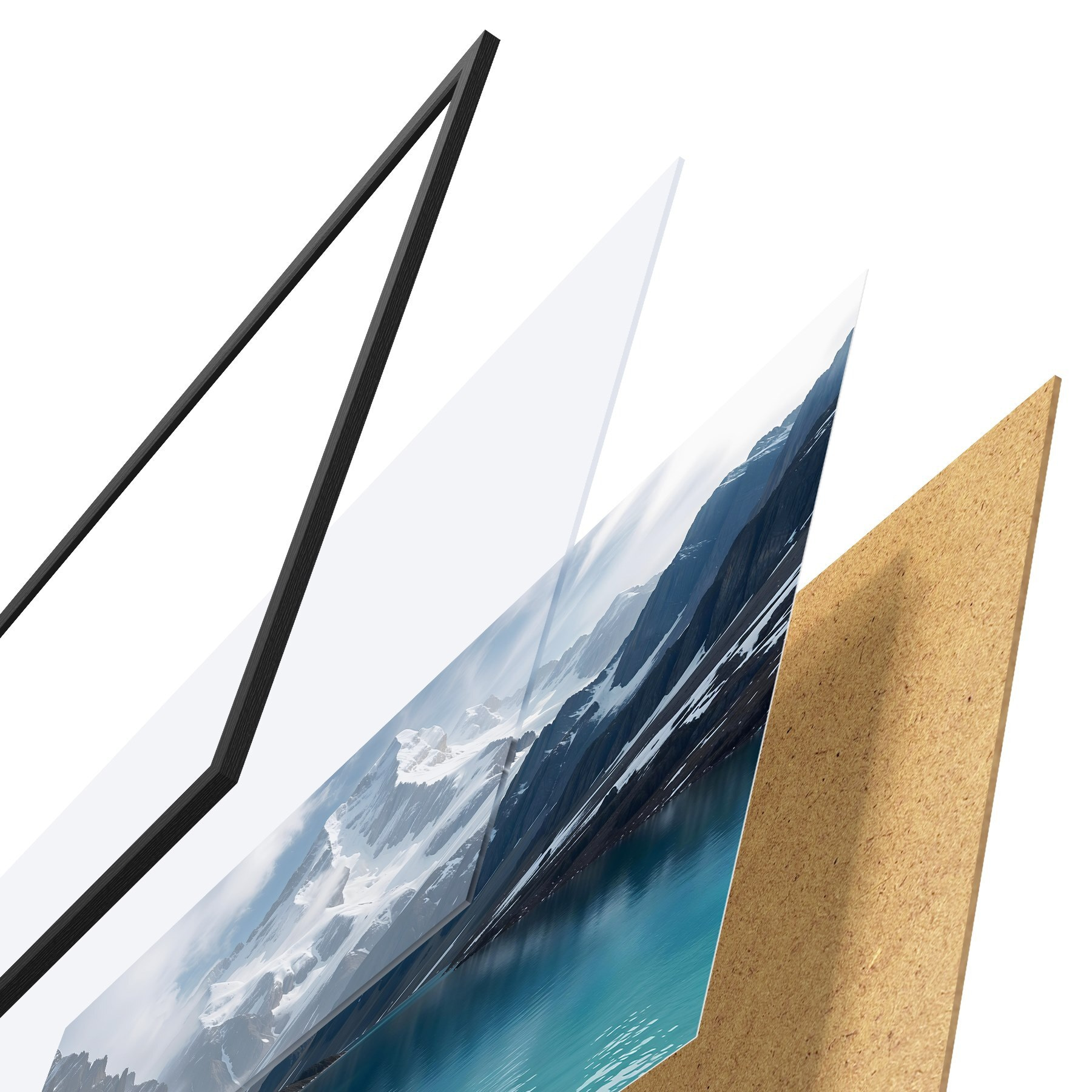 Plakatą sudaro rėmas, pleksiklas, atspausdintas vaizdas ir medžio drožlių plokštės pagrindas. Plakatą galima iš karto pakabinti ant sienos dėl kitoje pusėje esančių laikiklių.