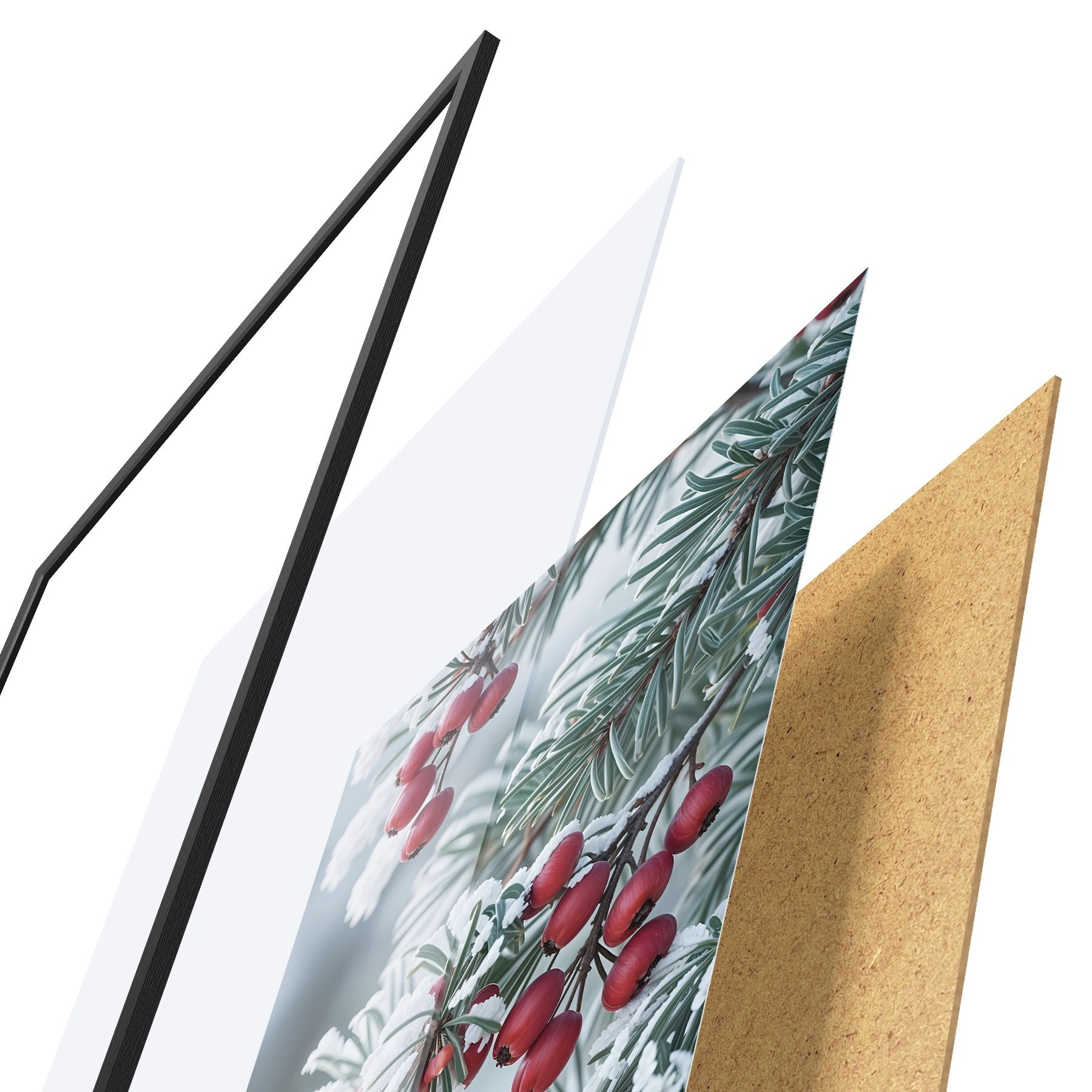 Plakatą sudaro rėmas, pleksiklas, atspausdintas vaizdas ir medžio drožlių plokštės pagrindas. Plakatą galima iš karto pakabinti ant sienos dėl kitoje pusėje esančių laikiklių.