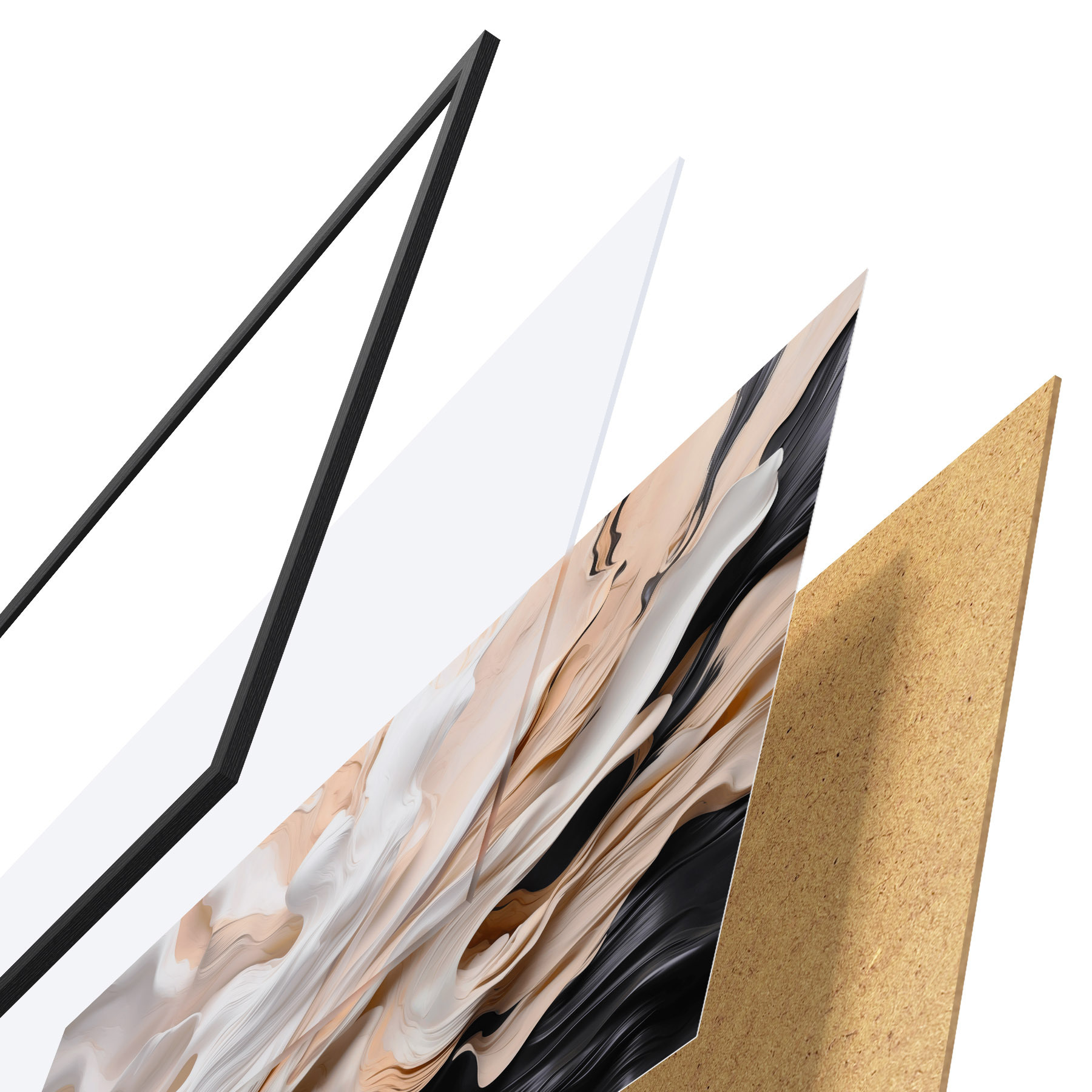 Plakatą sudaro rėmas, pleksiklas, atspausdintas vaizdas ir medžio drožlių plokštės pagrindas. Plakatą galima iš karto pakabinti ant sienos dėl kitoje pusėje esančių laikiklių.
