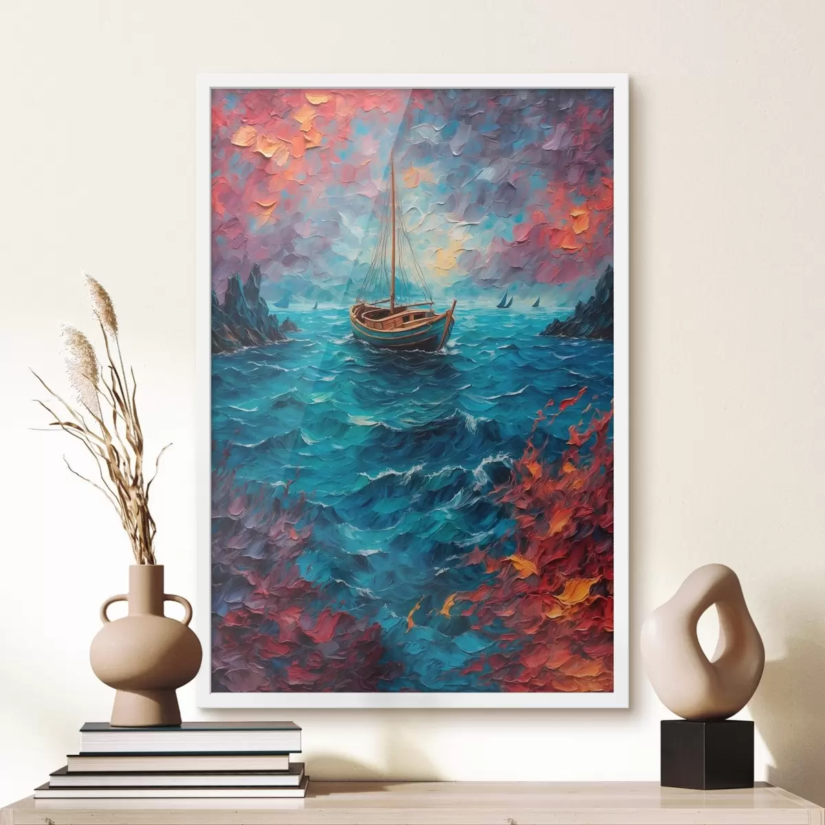 Plakatas Laivas plaukioja šėlstančioje jūroje f42250