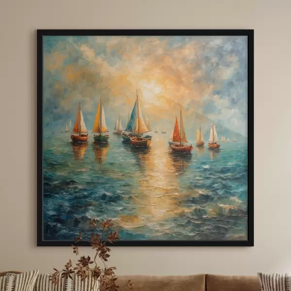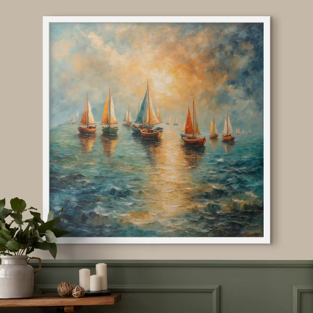 Plakatas Į saulėlydį plaukiantys laivai f42251