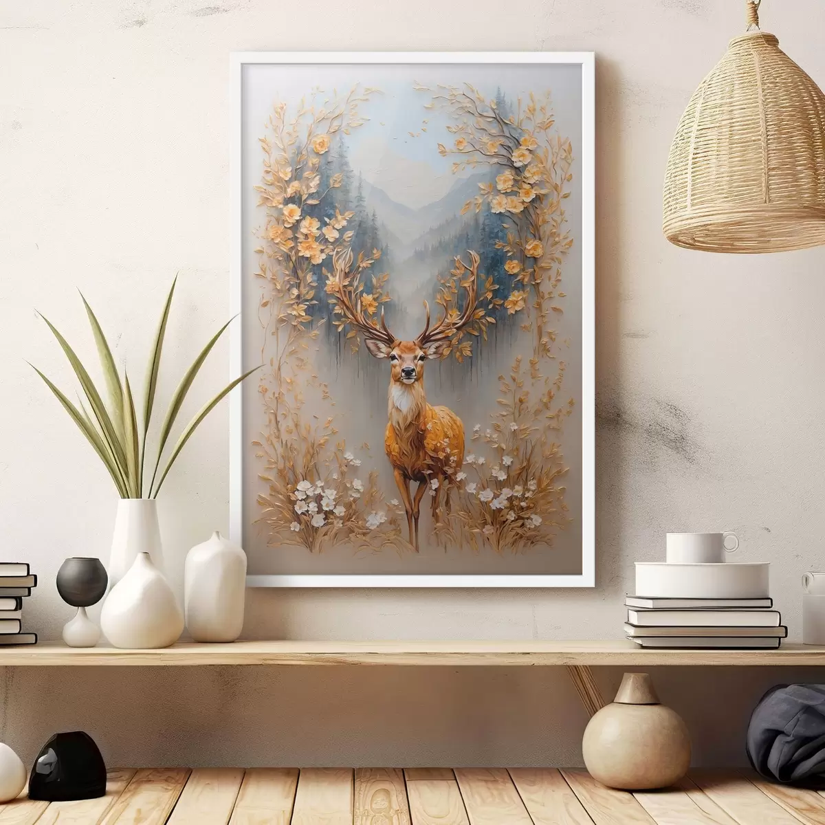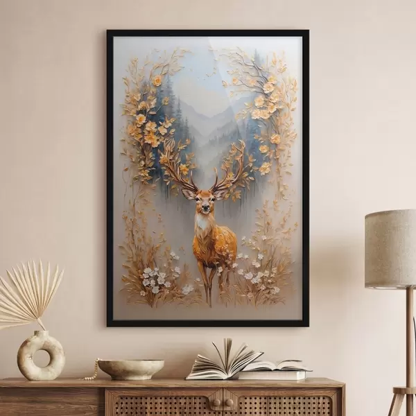 Plakatas Elnias su dideliais ragais miško fone f42252