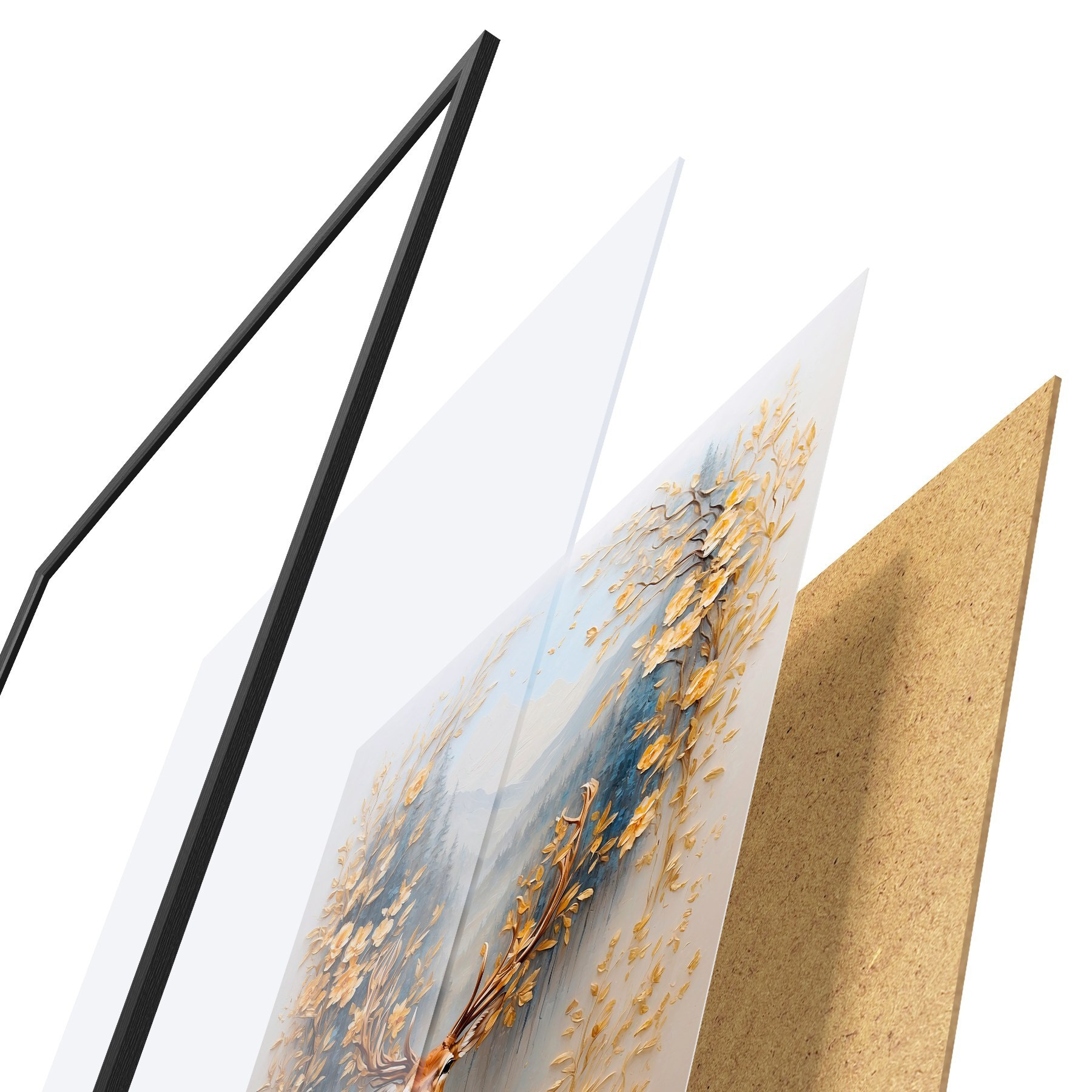 Plakatą sudaro rėmas, pleksiklas, atspausdintas vaizdas ir medžio drožlių plokštės pagrindas. Plakatą galima iš karto pakabinti ant sienos dėl kitoje pusėje esančių laikiklių.