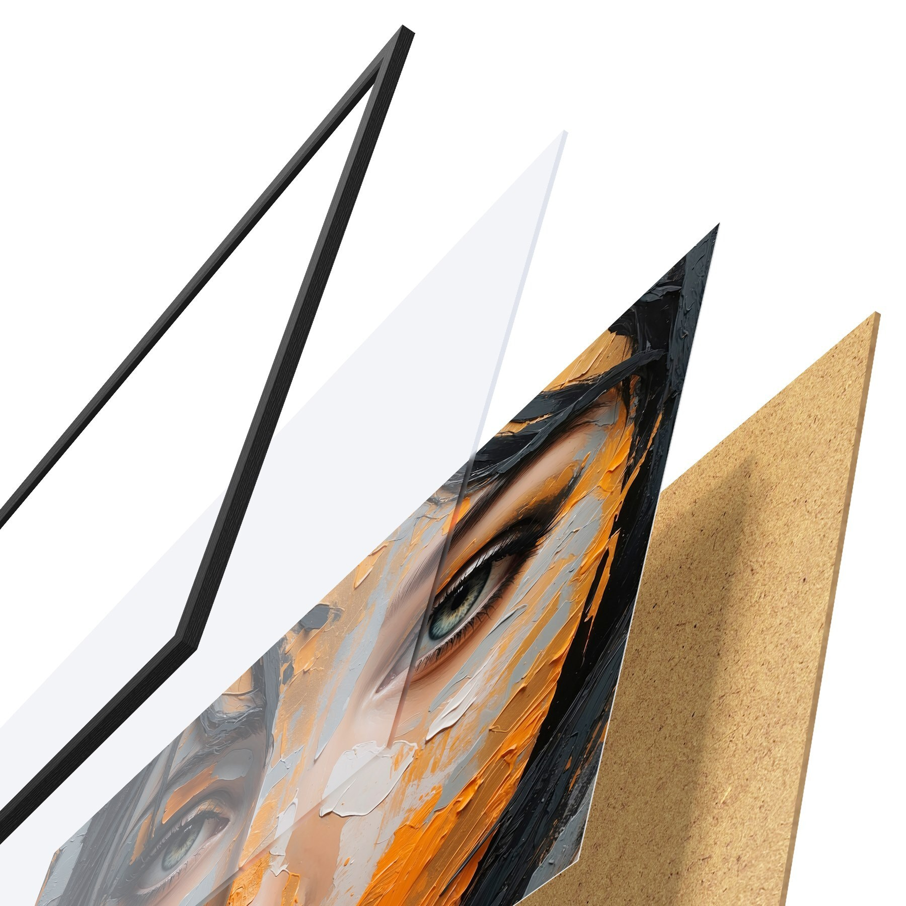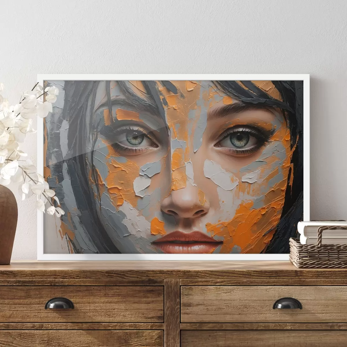 Plakatas Mergaitės veidas baltais ir geltonais dažais f42259