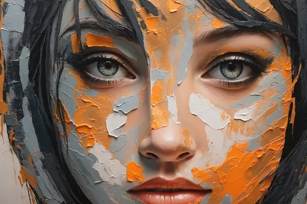 Plakatas Mergaitės veidas baltais ir geltonais dažais f42259
