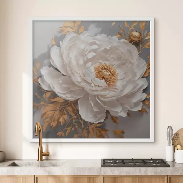 Plakatas Baltas bijūnas pilkame fone Ne f42260