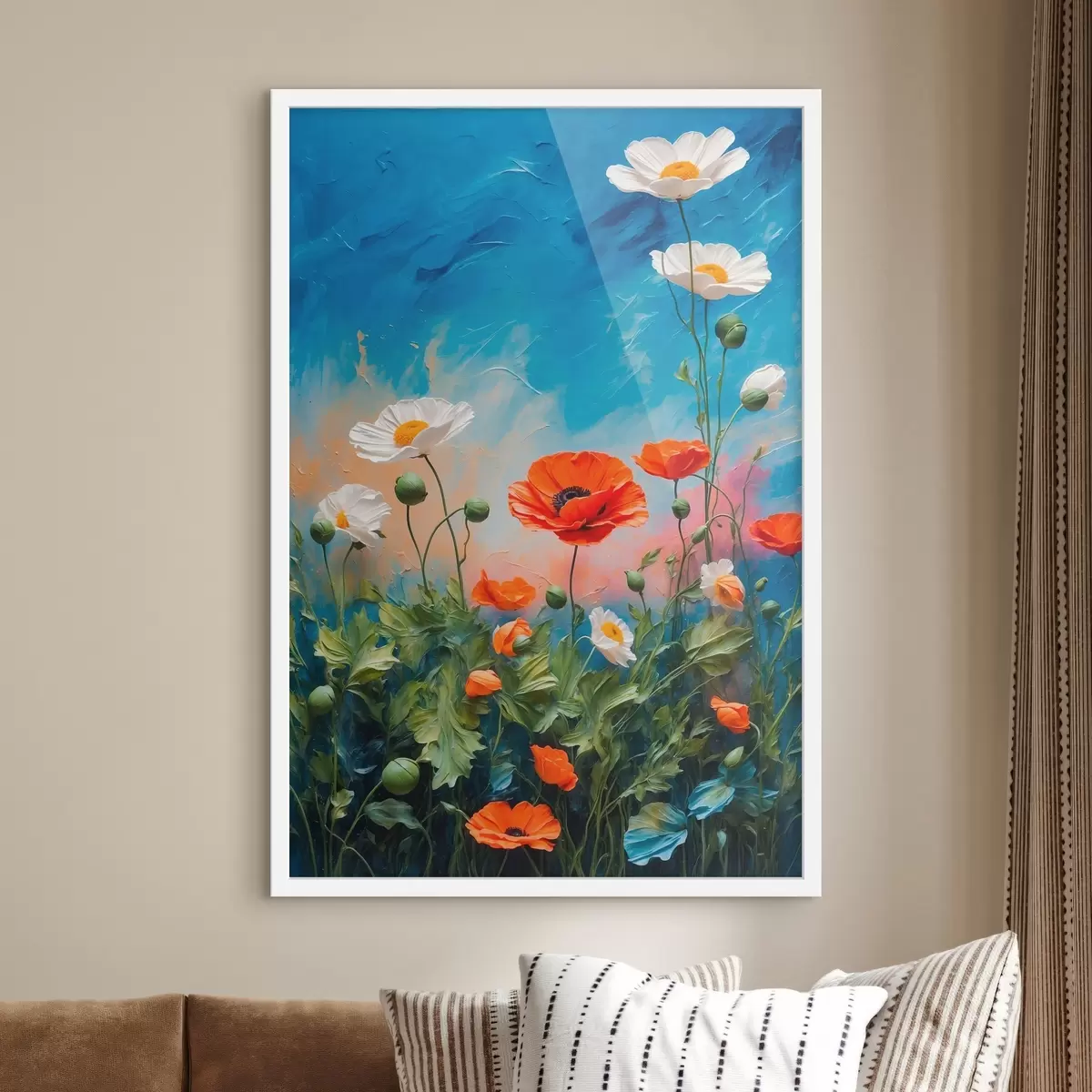 Plakatas Margaretės ir aguonos mėlyname fone Ne f42261
