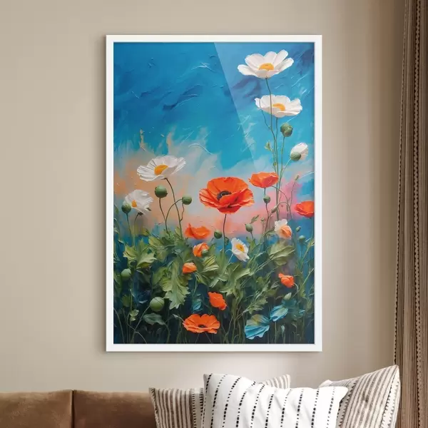 Plakatas Margaretės ir aguonos mėlyname fone f42261