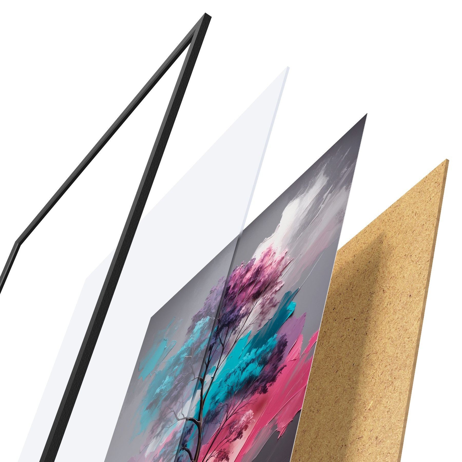 Plakatą sudaro rėmas, pleksiklas, atspausdintas vaizdas ir medžio drožlių plokštės pagrindas. Plakatą galima iš karto pakabinti ant sienos dėl kitoje pusėje esančių laikiklių.