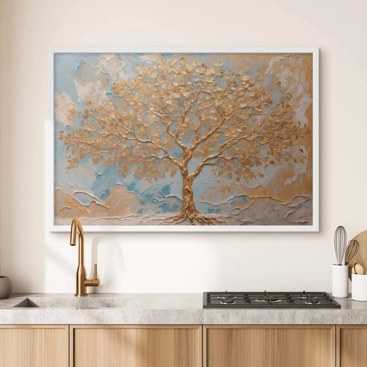 Plakatas Geltonas medis mėlyname baltame fone f42266