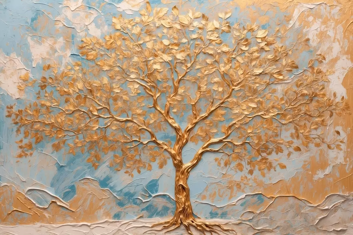 Plakatas Geltonas medis mėlyname baltame fone f42266