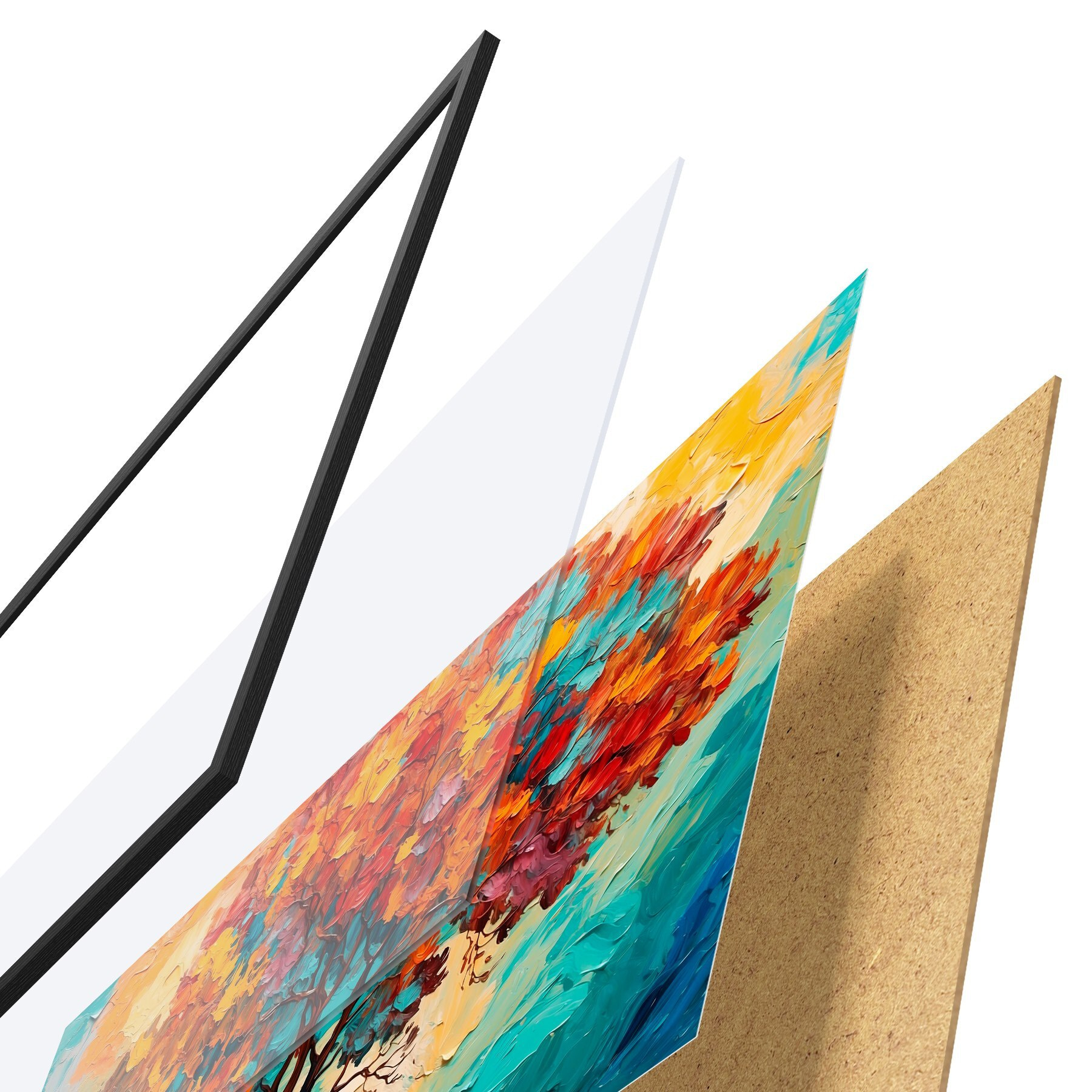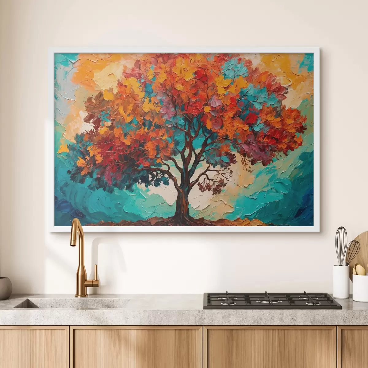 Plakatas Medis oranžinės ir mėlynos spalvos fone aliejinės tapybos stiliumi f42267