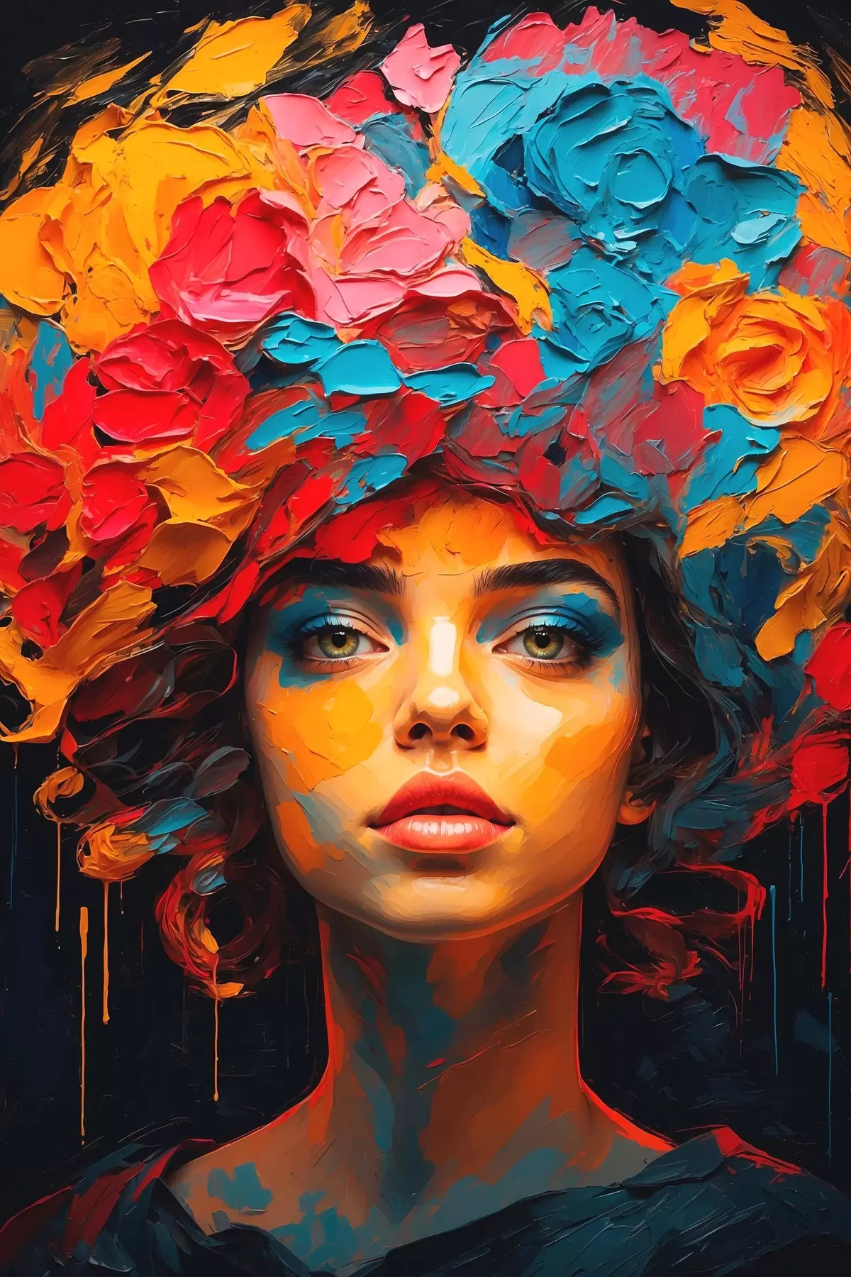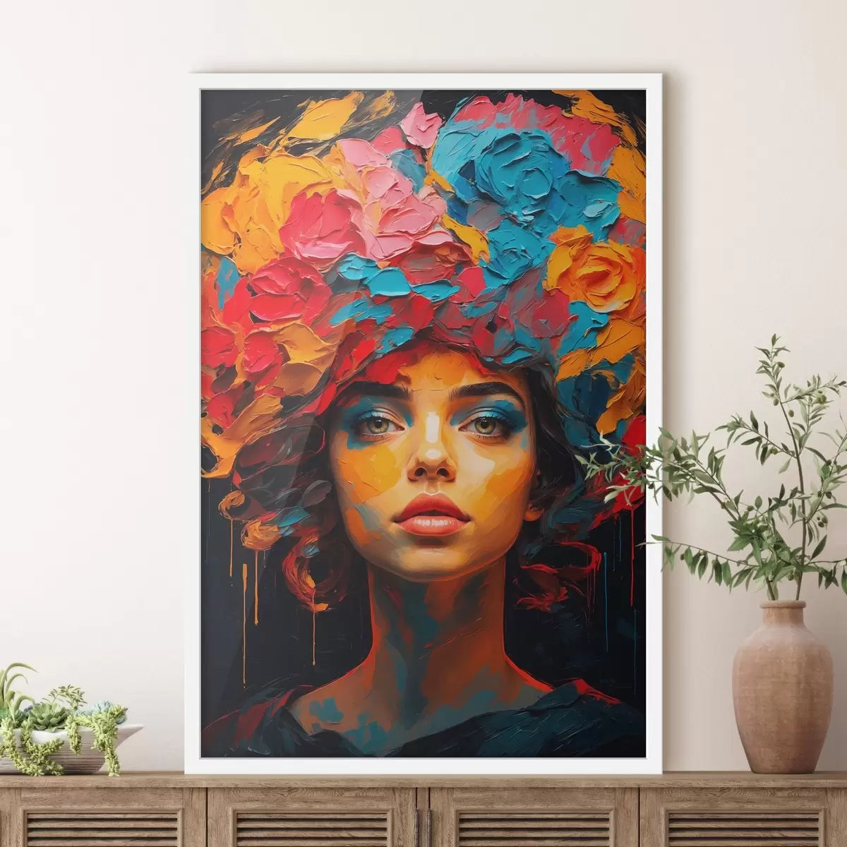 Plakatas Mergaitė su gėlėmis ant galvos aliejinės tapybos stiliumi Ne f42271