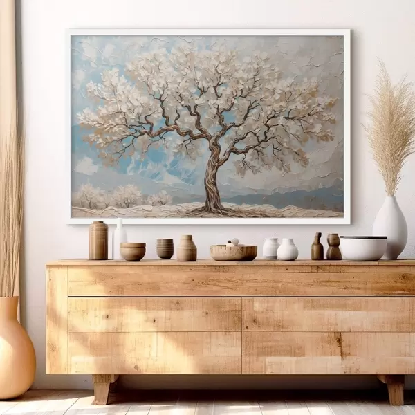 Plakatas Baltas medis mėlyname-baltame fone f42275
