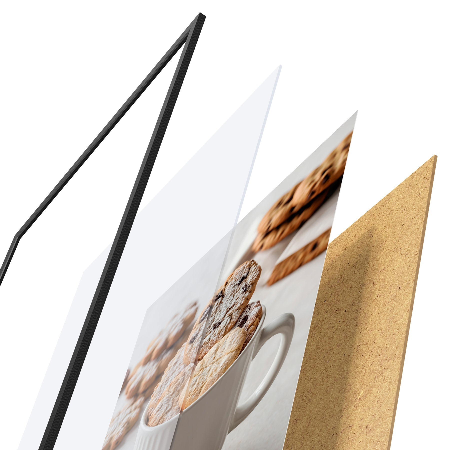Plakatą sudaro rėmas, pleksiklas, atspausdintas vaizdas ir medžio drožlių plokštės pagrindas. Plakatą galima iš karto pakabinti ant sienos dėl kitoje pusėje esančių laikiklių.