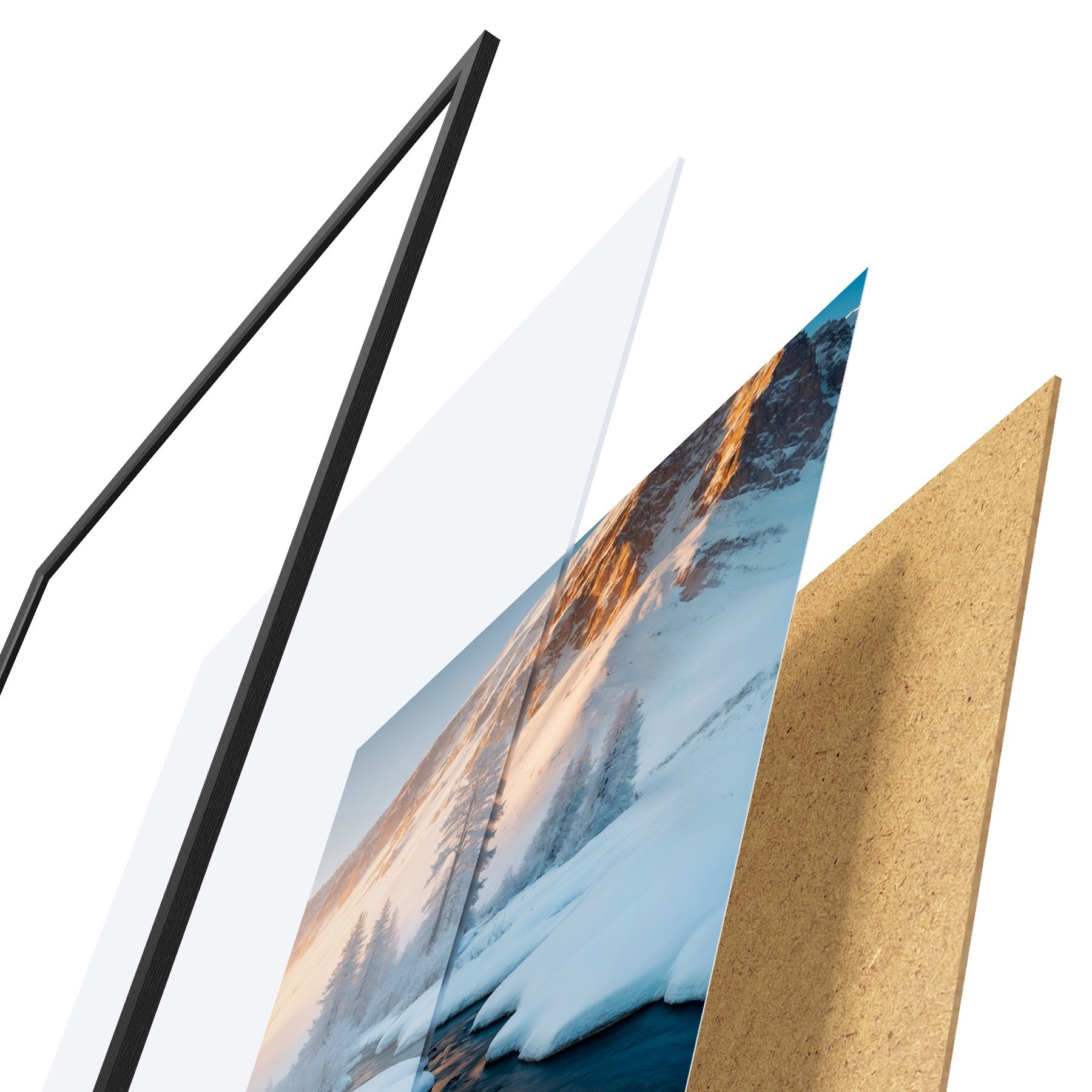 Plakatą sudaro rėmas, pleksiklas, atspausdintas vaizdas ir medžio drožlių plokštės pagrindas. Plakatą galima iš karto pakabinti ant sienos dėl kitoje pusėje esančių laikiklių.
