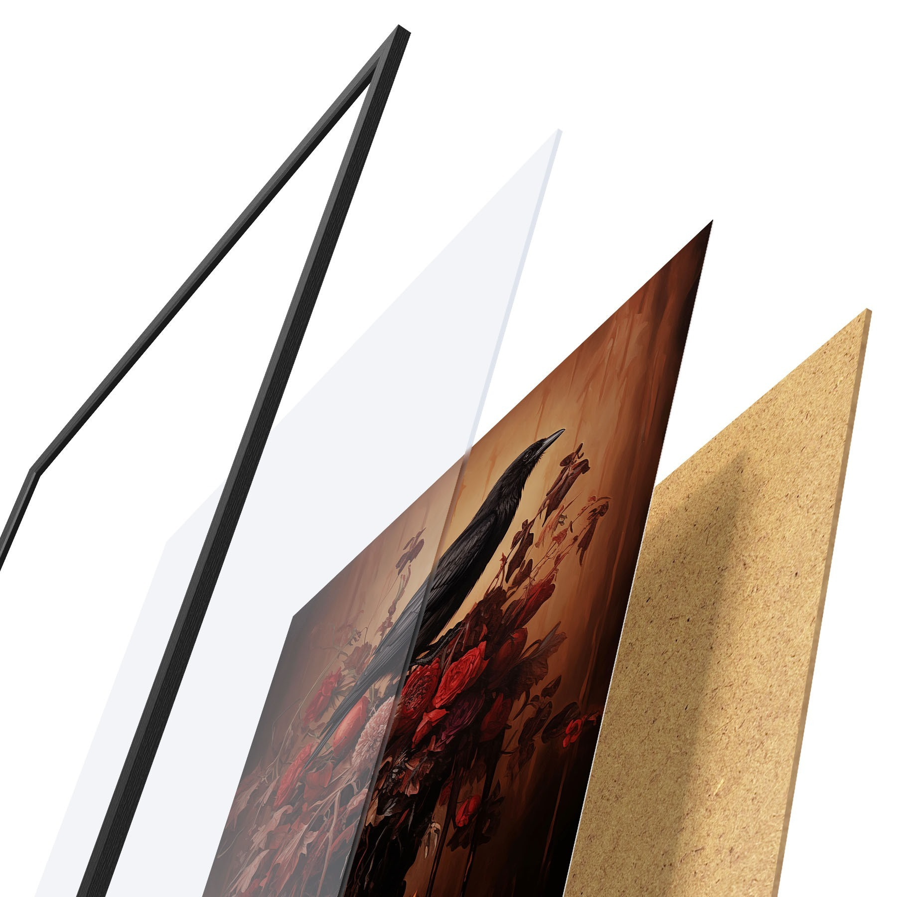 Plakatą sudaro rėmas, pleksiklas, atspausdintas vaizdas ir medžio drožlių plokštės pagrindas. Plakatą galima iš karto pakabinti ant sienos dėl kitoje pusėje esančių laikiklių.