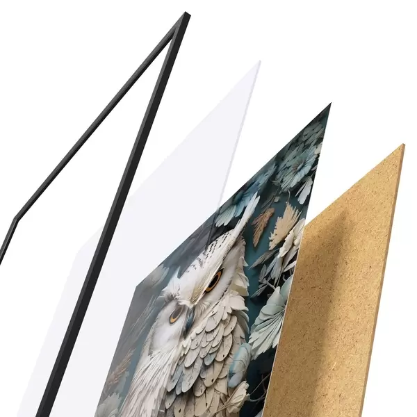 Plakatą sudaro rėmas, pleksiklas, atspausdintas vaizdas ir medžio drožlių plokštės pagrindas. Plakatą galima iš karto pakabinti ant sienos dėl kitoje pusėje esančių laikiklių.