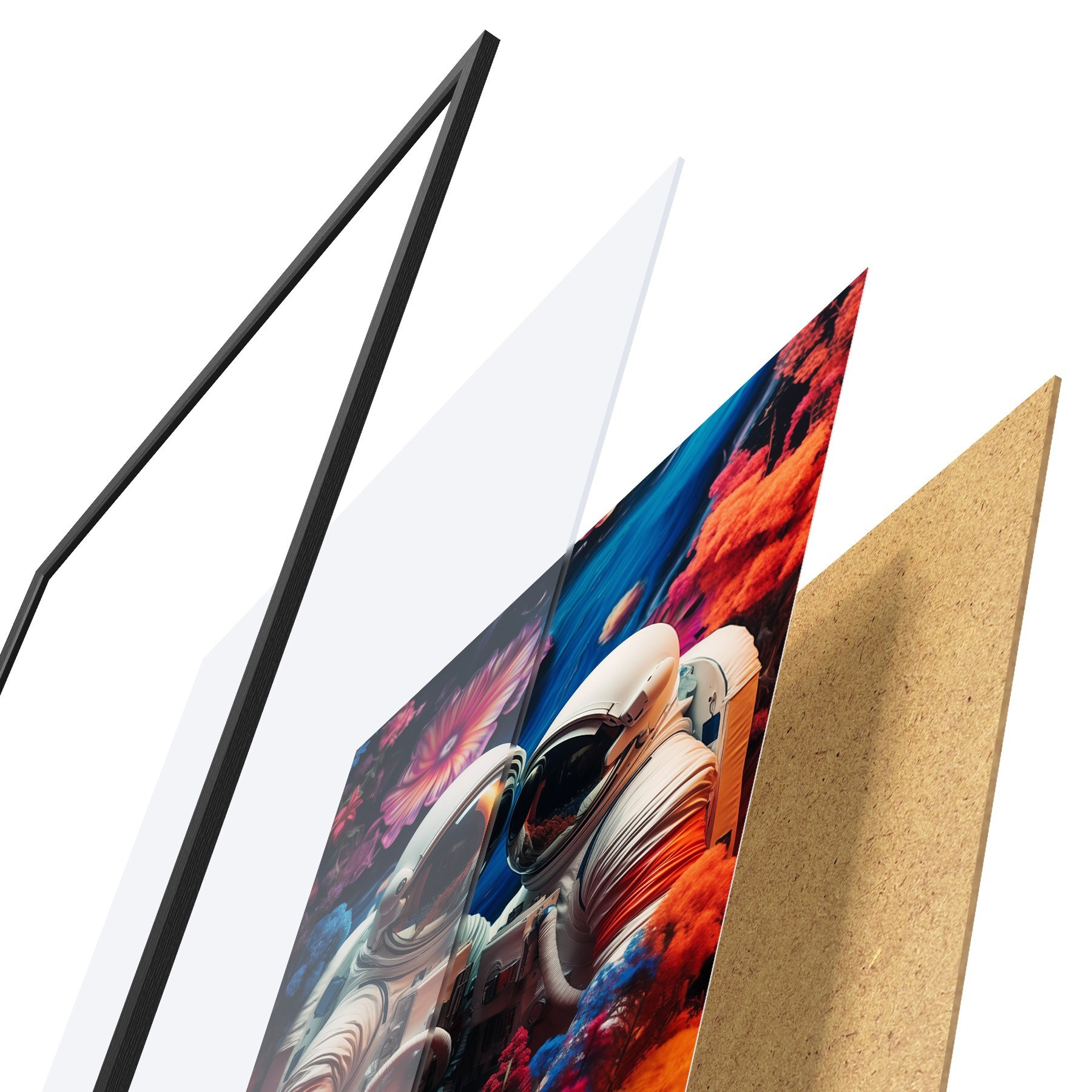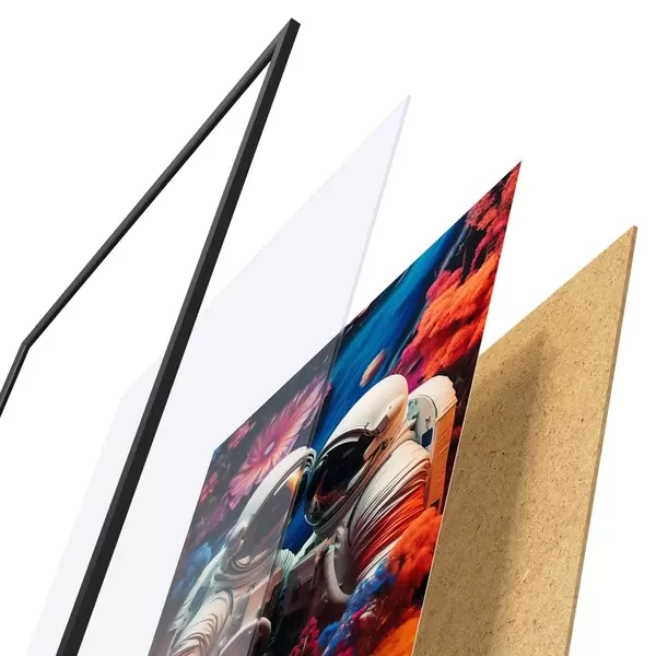 Plakatą sudaro rėmas, pleksiklas, atspausdintas vaizdas ir medžio drožlių plokštės pagrindas. Plakatą galima iš karto pakabinti ant sienos dėl kitoje pusėje esančių laikiklių.