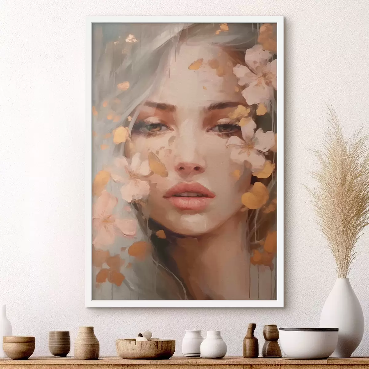 Plakatas Mergaitė ir rožinės gėlės f42301