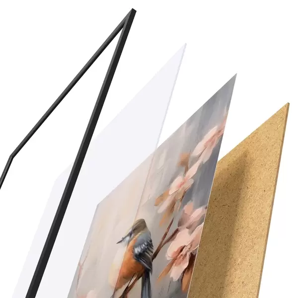 Plakatą sudaro rėmas, pleksiklas, atspausdintas vaizdas ir medžio drožlių plokštės pagrindas. Plakatą galima iš karto pakabinti ant sienos dėl kitoje pusėje esančių laikiklių.