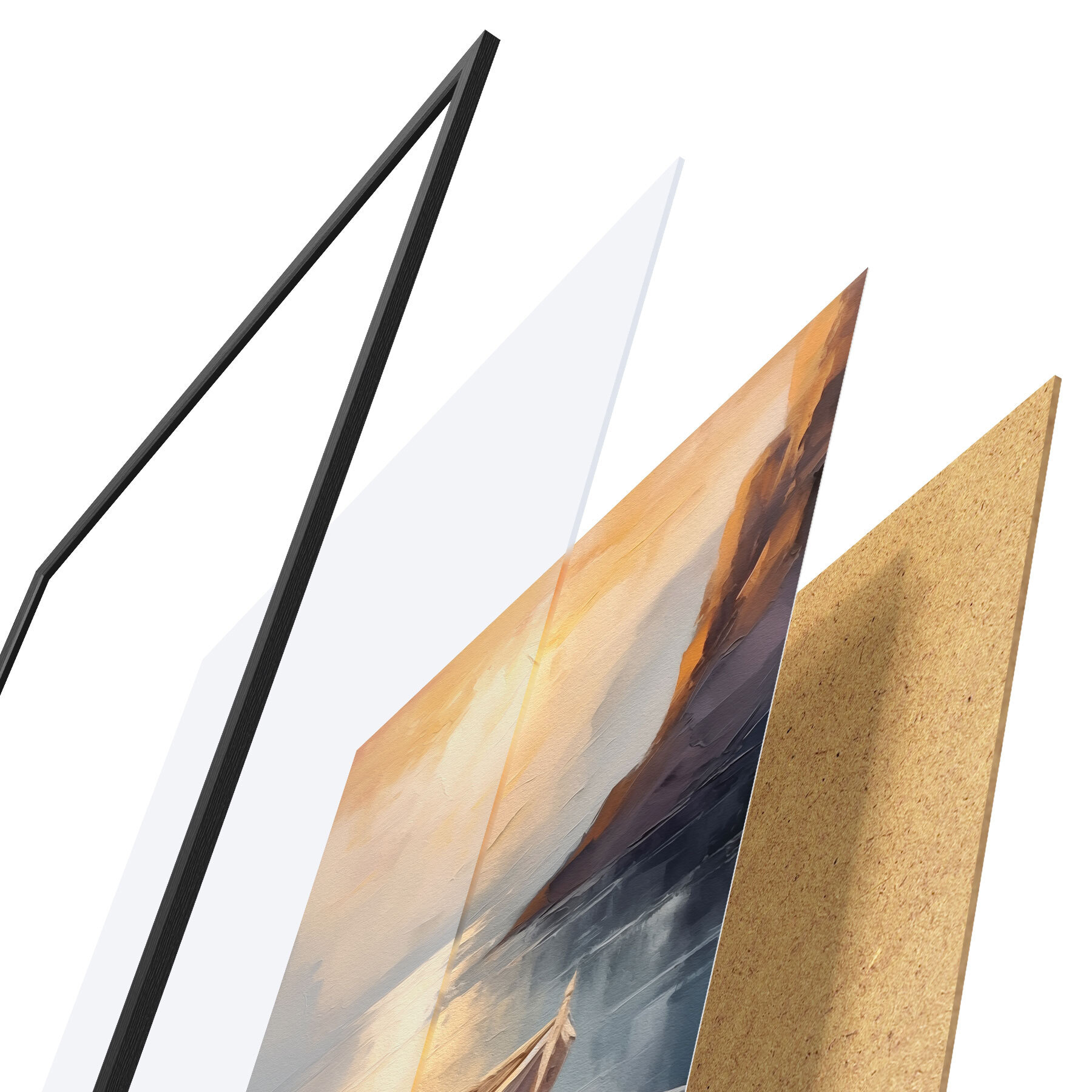 Plakatą sudaro rėmas, pleksiklas, atspausdintas vaizdas ir medžio drožlių plokštės pagrindas. Plakatą galima iš karto pakabinti ant sienos dėl kitoje pusėje esančių laikiklių.