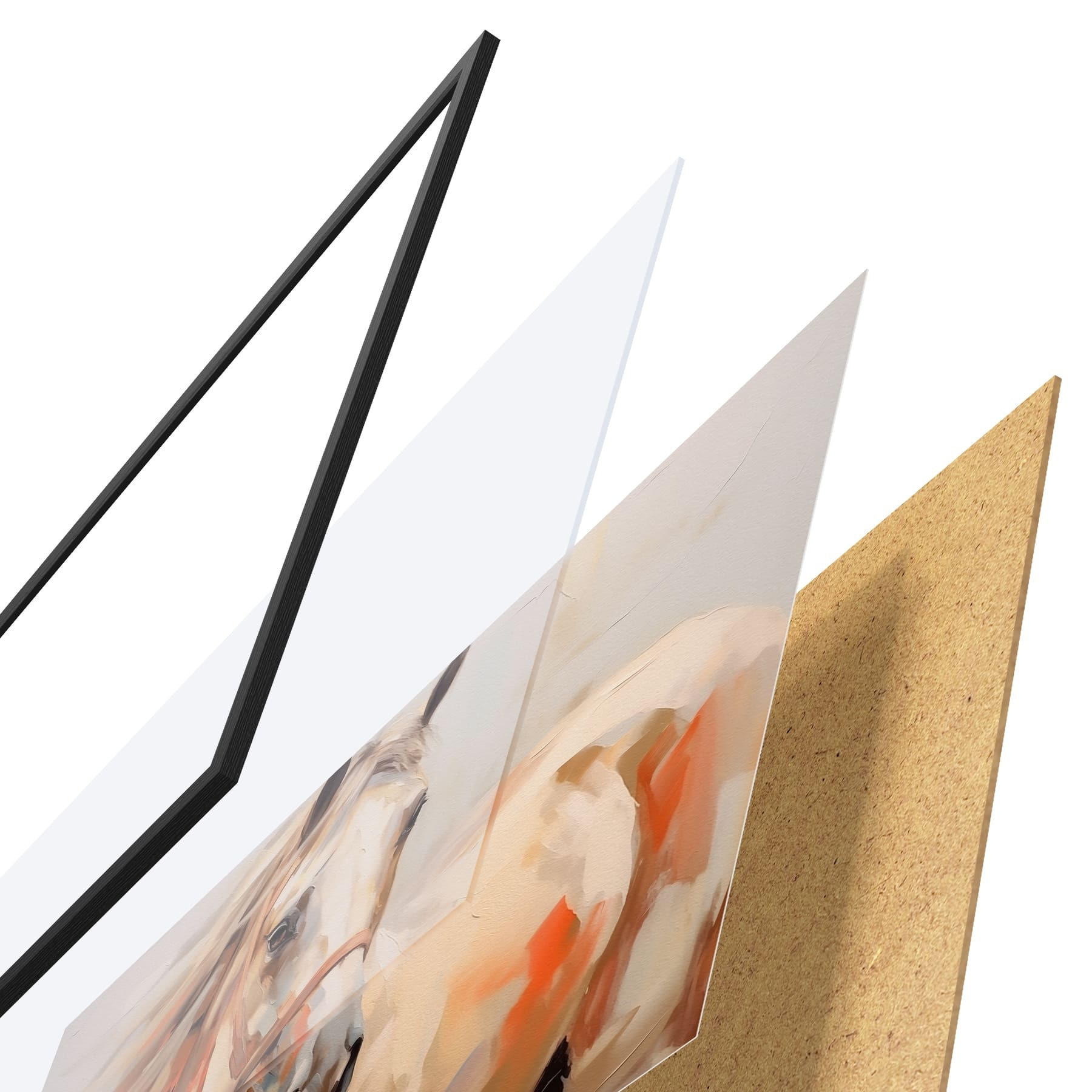 Plakatą sudaro rėmas, pleksiklas, atspausdintas vaizdas ir medžio drožlių plokštės pagrindas. Plakatą galima iš karto pakabinti ant sienos dėl kitoje pusėje esančių laikiklių.