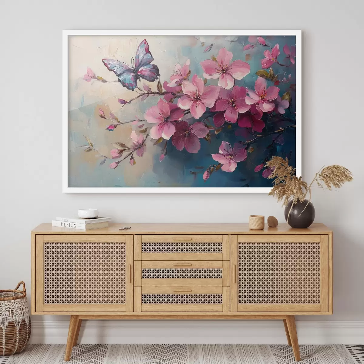 Plakatas Rožinės gėlės ir drugelis f42320