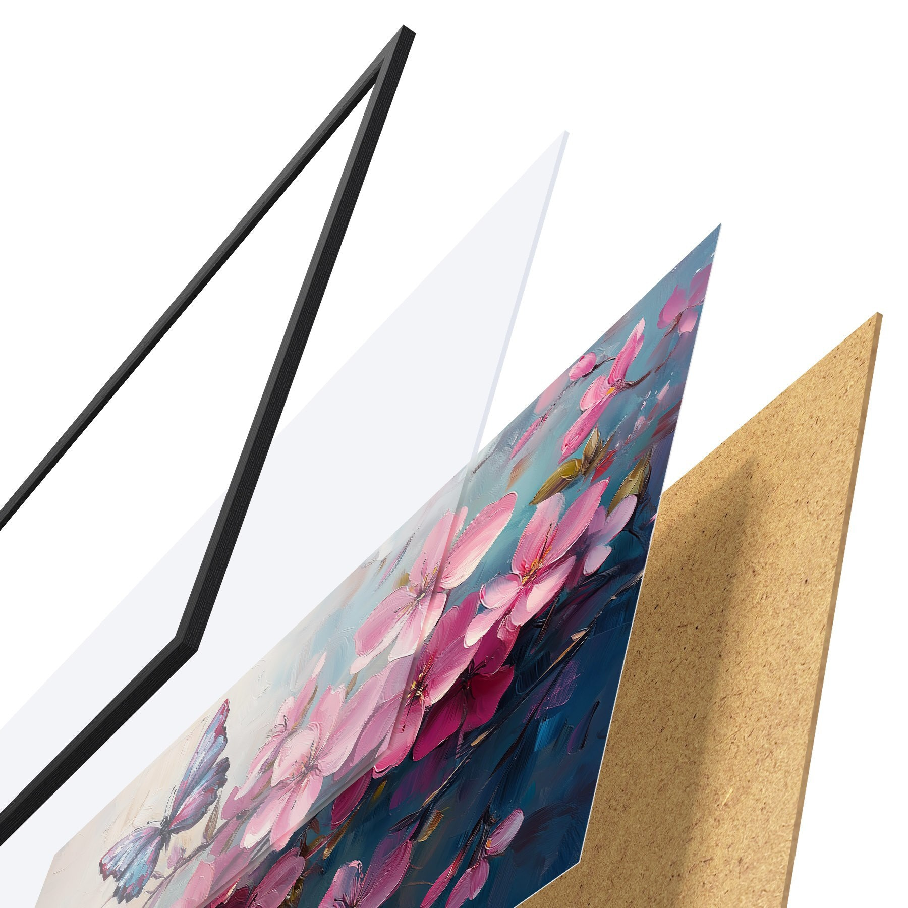 Plakatą sudaro rėmas, pleksiklas, atspausdintas vaizdas ir medžio drožlių plokštės pagrindas. Plakatą galima iš karto pakabinti ant sienos dėl kitoje pusėje esančių laikiklių.