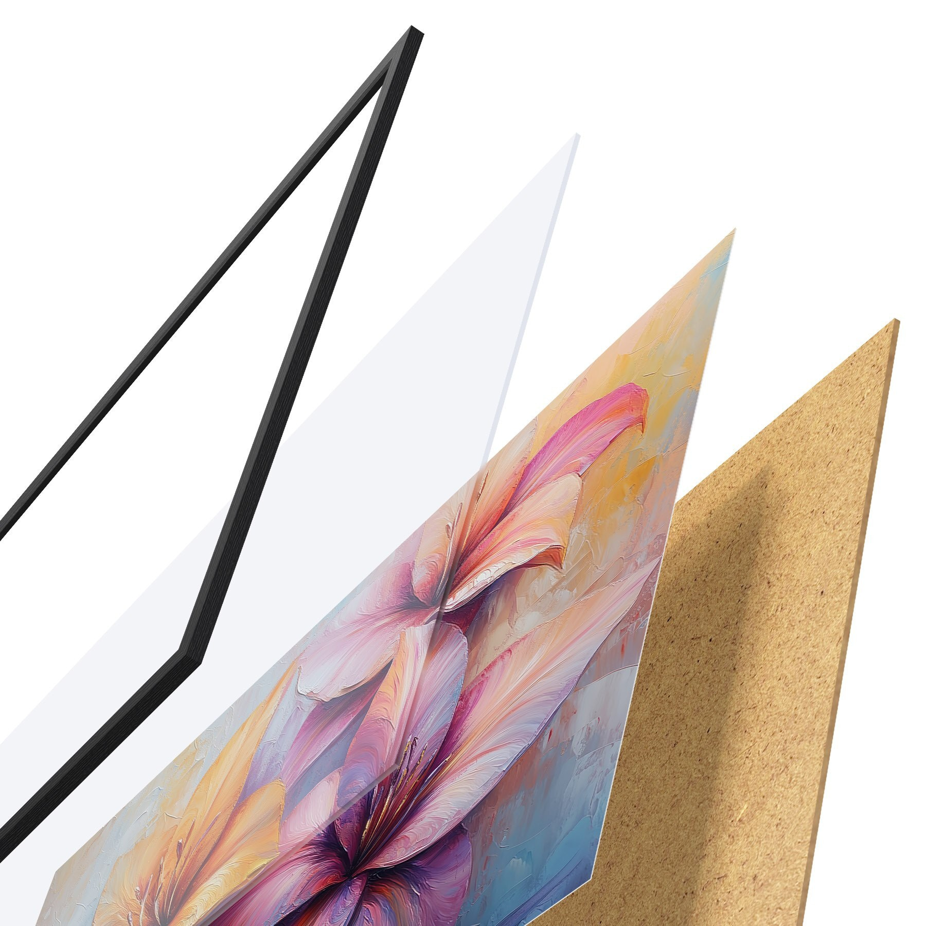 Plakatą sudaro rėmas, pleksiklas, atspausdintas vaizdas ir medžio drožlių plokštės pagrindas. Plakatą galima iš karto pakabinti ant sienos dėl kitoje pusėje esančių laikiklių.