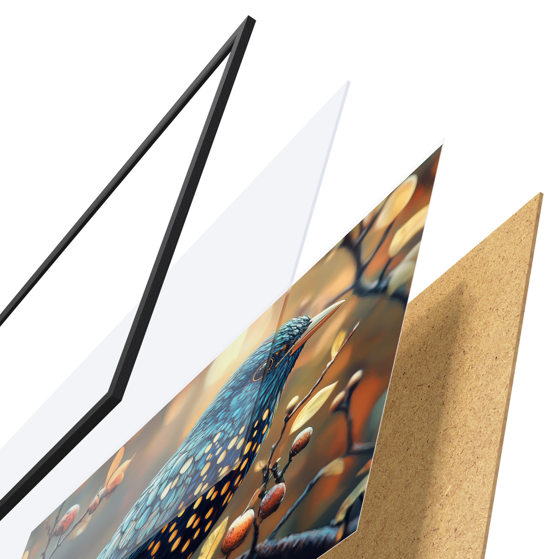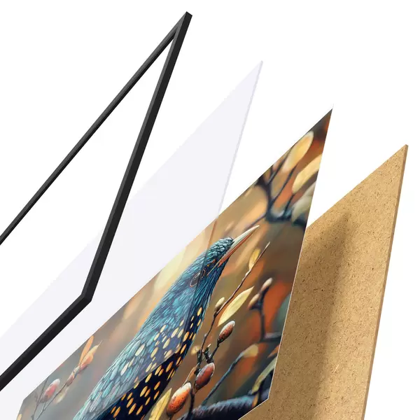 Plakatą sudaro rėmas, pleksiklas, atspausdintas vaizdas ir medžio drožlių plokštės pagrindas. Plakatą galima iš karto pakabinti ant sienos dėl kitoje pusėje esančių laikiklių.