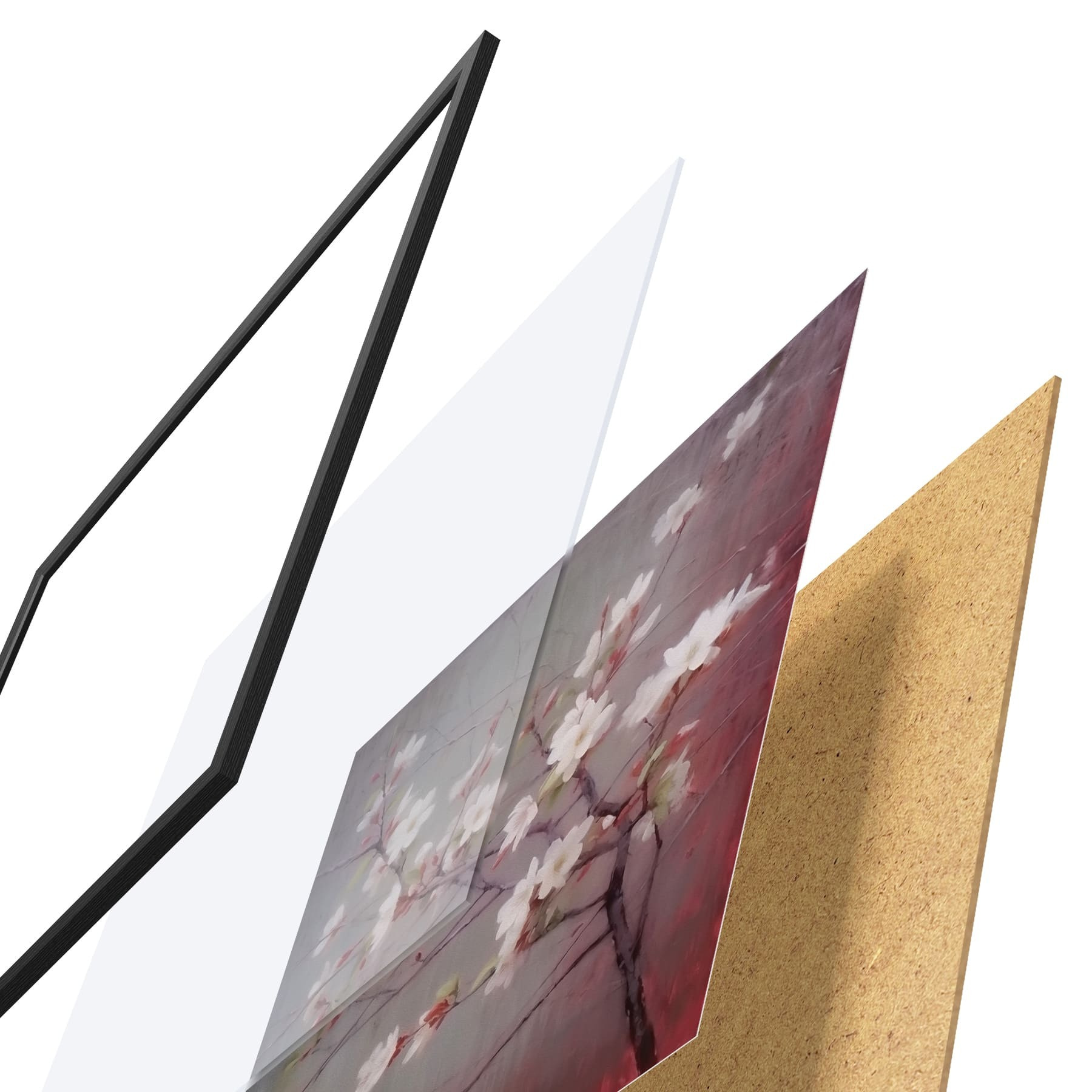Plakatą sudaro rėmas, pleksiklas, atspausdintas vaizdas ir medžio drožlių plokštės pagrindas. Plakatą galima iš karto pakabinti ant sienos dėl kitoje pusėje esančių laikiklių.